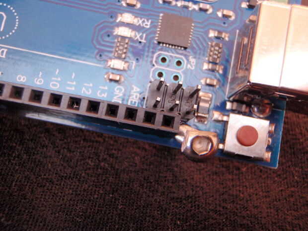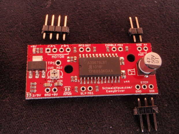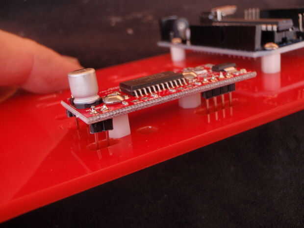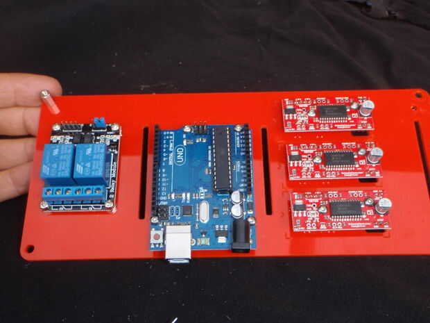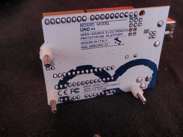 La electrónica de montaje directo, con la excepción de uno de los tornillos en el arduino tiene que tener parte de la cabeza presentó, como el orificio es demasiado al que montar los pasadores de la cabecera a la Junta. Si sus tablas de fácil driver vienen sin los pernos tienes 9 pernos de soldadura como se muestra.