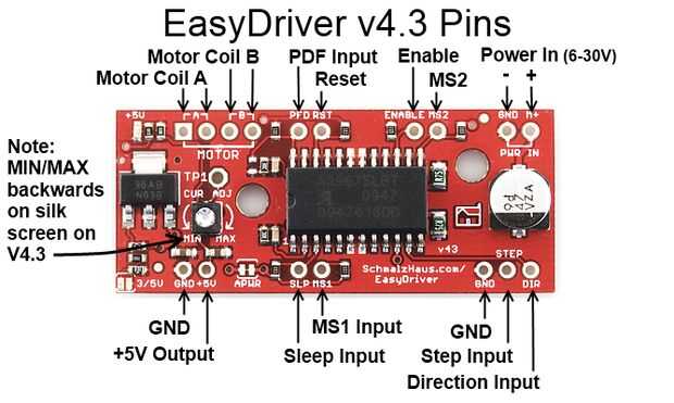 - Sólo la soldadura de pernos en el pin marcado poder en - +, GRD, paso entrada, entrada de la dirección, bobina de motor A y bobina motor B