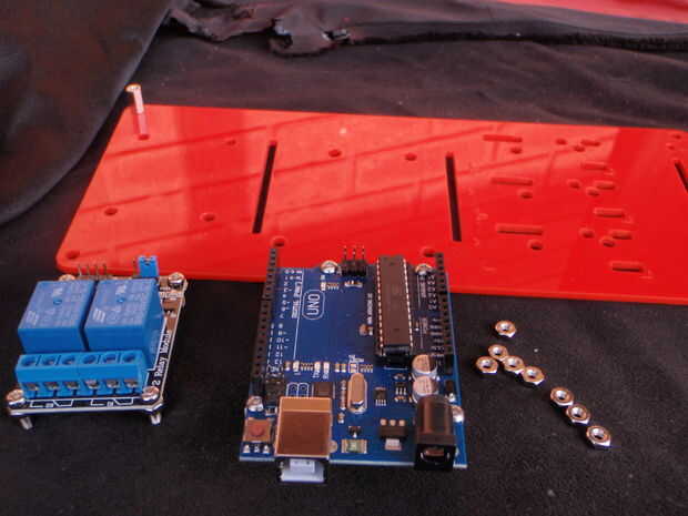 - Cuatro de los pernos de 20mm puede montarse en el ardunio con tuercas de 3mm, atornilladas en la parte inferior. (No separadores de nylon como se muestra en la foto)