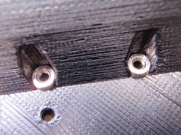 - Asegúrese de que la balsa se elimine totalmente el interior de los agujeros grandes, ya que los rodamientos son un ajuste apretado y se atascará si hay balsa en el camino