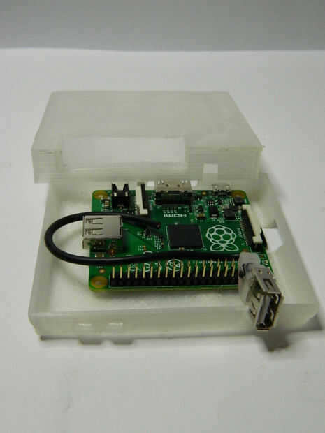 Necesitaba hacer un pequeño cable de extensión USB para obtener el puerto de controlador en la parte delantera de la caja.