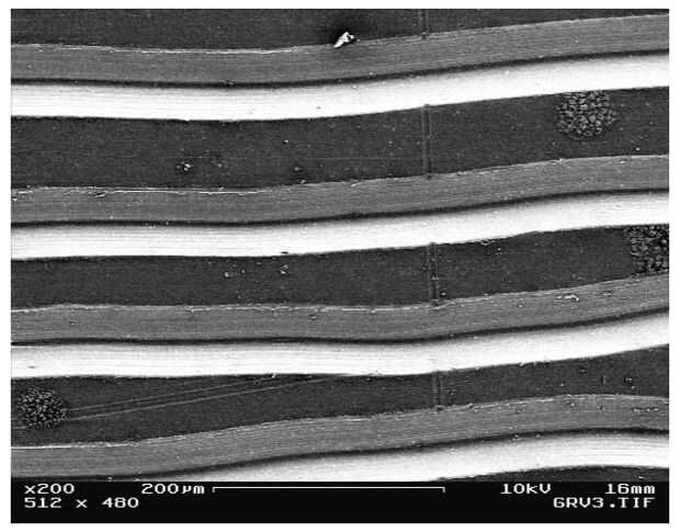 Para darte una idea de la resolución de un registro moderno, revisa las imágenes de arriba. Higos 1-3 son de Chris Supranowitz, investigador en El Instituto de óptica de la Universidad de Rochester. Estas son imágenes de un disco de vinilo, cerrar con un microscopio electrónico. Los objetos oscuros de higos 1 y 2 son pequeñas partículas de polvo. La figura 3 es una vista panorámica de los surcos de registro, las regiones más oscuras son la superficie (sin cortar) del registro.