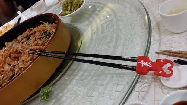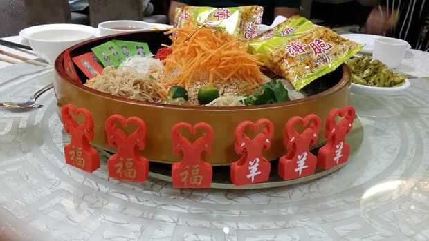 Comer Yee Sang durante año nuevo chino es una actividad cultural para los chinos viviendo en Singapur y Malasia. Para aquellos que tienen dificultades en el manejo de los palillos (especialmente cuando se requiere que usted mezcle el yee sang tan alto como sea posible para mejor fortuna y la prosperidad), he diseñado y 3D impreso un ayudante de palillos para mejorar tus palillos manejo habilidades...:)