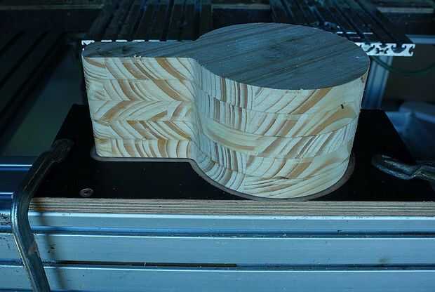 si tienes una losa de madera grande que no cabe en una cepilladora, puede utilizar una mesa de fresadora CNC para realizar un espesor cepillar. Lo hice en TechShop en Pittsburgh. www.techshop.comHice una mesa de cóctel con mi losa.Paso 1: Fije su los