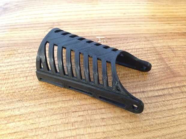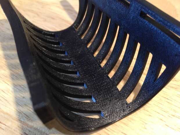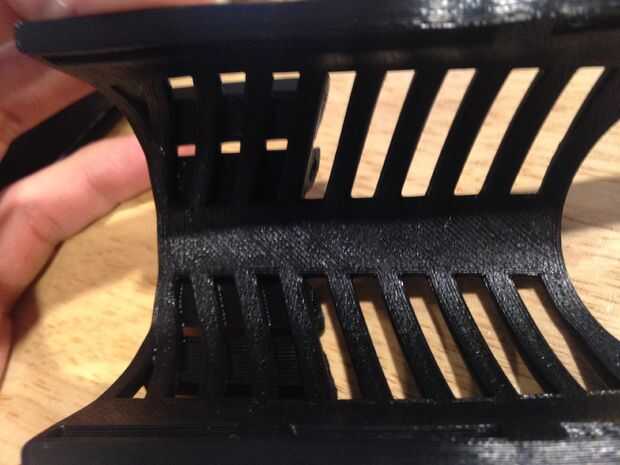 Uno de los mayores desafíos en 3D dispositivos prostéticos impresos bajo costo es lograr el ajuste apropiado. Si las cargas en el dispositivo no se distribuye adecuadamente a través de la piel y el tejido subyacente, puede llevar a irritaciones, moretones o sarpullidos. En el caso del cuerpo impulsado por dispositivos protésicos que diseña la comunidad de e-no se puede, hay dos componentes de interfaces de cuerpo: la palma y el guante. La palma sirve como un "bolsillo" en el cual el usuario desliza su mano residual y el guantelete anclas el dispositivo al antebrazo. Cuando se trata de la instalación, una solución es 3D el residual del miembro que se instalará el dispositivo y modelo el guantelete en software para ajustarse a la superficie de la exploración. Cuando se imprime, la geometría resultante a menudo requiere importante apoyo material y tiene regiones débiles debido a la pobre adecuación del plano corte a los planos de acción en la geometría.