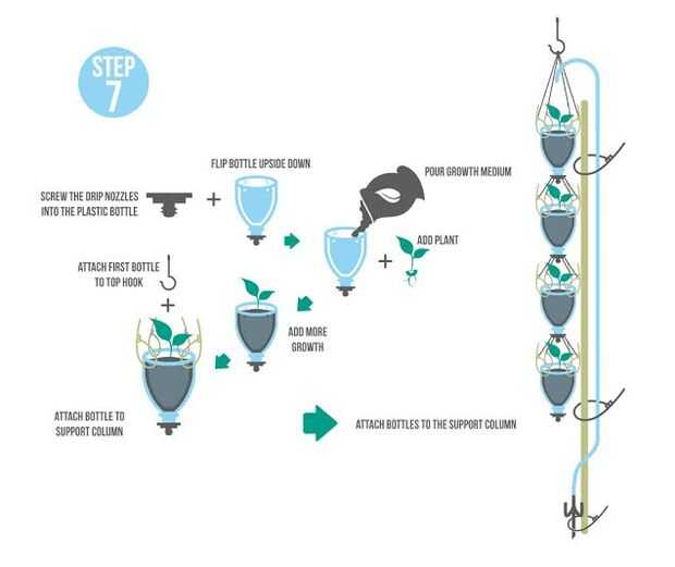 Paso 7: Fijar las botellas en la columna de apoyo.