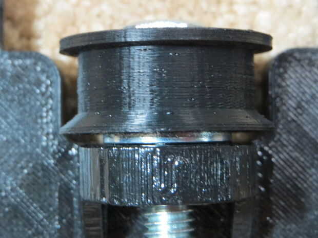2. Instale 3 arandelas M8 en el otro extremo de la correa polea 608, suficientes arandelas para ser pasado al ras contra la banda intermedia.