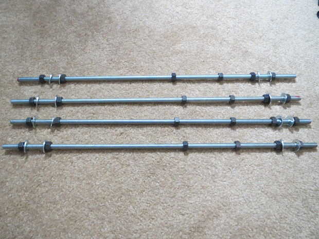 3. para evitar que las barras uniformemente, mide 40mm desde el extremo de las varillas roscadas en la parte posterior de la intermedia Y de fin.
