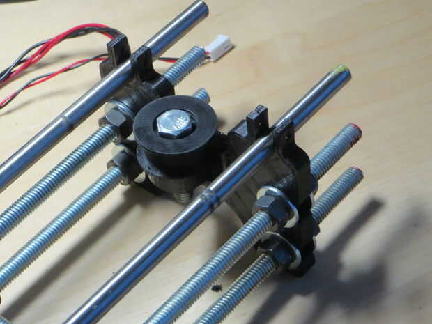 1. Inserte ambos barra de taladro de 8mm x 450 mm en la placa de construir montado