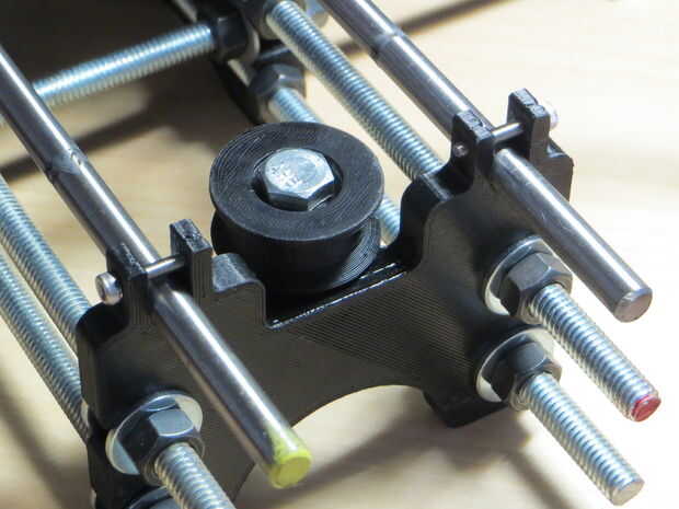 2. soltar las barras de taladro de 8mm de la construcción de la placa en mordaza Y final intermedia y del Motor. Consulte la guía ilustrada.