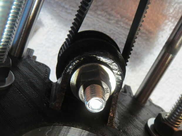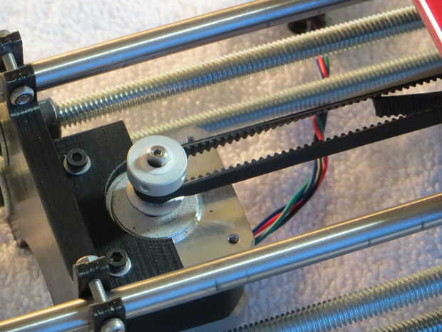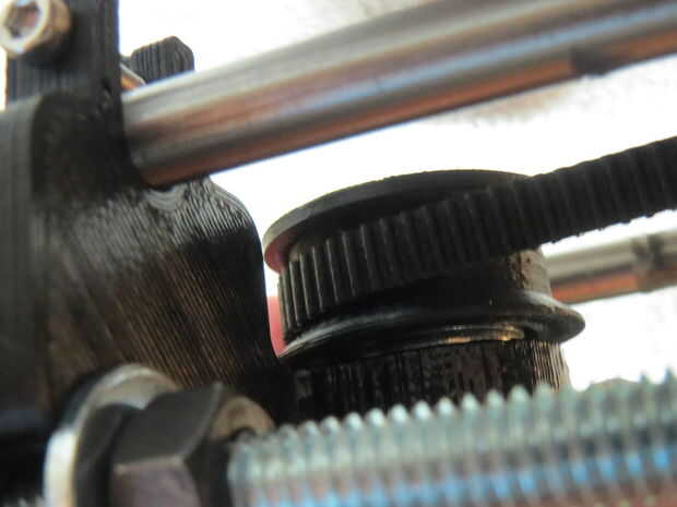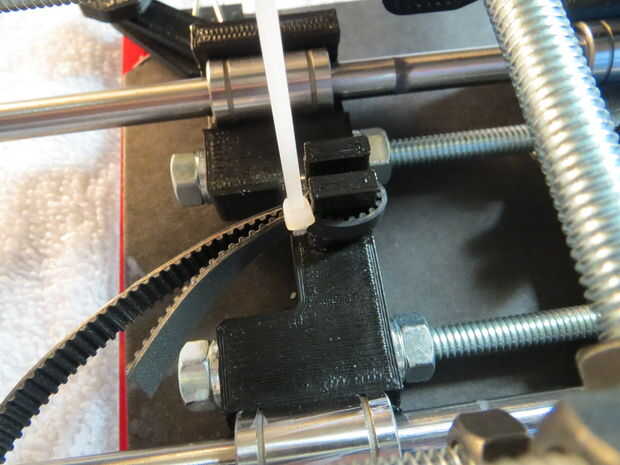 4. cuando se envuelve la correa alrededor de la correa polea 608, darle la vuelta a la parte plana de la correa. Consulte la guía pictórica (esto evita que el recorrido lineal Y "rebote" debido a la GT2 de dientes sobre la superficie plana de la polea de correa del montar a caballo. El cinturón de los bancos no resultará en impresiones ondulados sobre el eje Y.)