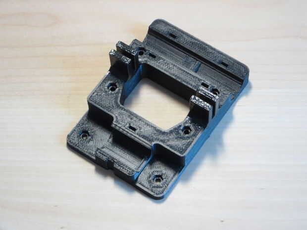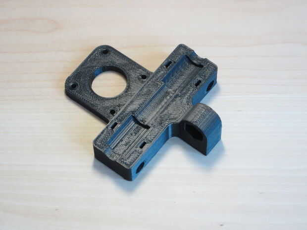 Si eres plan sobre el uso de la extrusora de QU-BD MBE, el montaje de la extrusora debe imprimirse en ABS, no PLA. La separación de la hotend en el montaje de la extrusora es más bien estrecha y podría derretir el PLA. Debe estar bien utiliza Jhead estilo hotend.