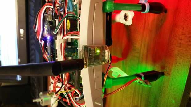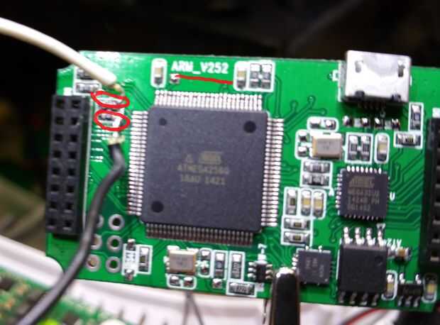 Tomar 2 cables extras y soldarlos a la ubicación en la parte inferior de la primera junta. Considerando la primera junta que dices. Bien igual y arduino, las tablas vienen aparte. Tan cuidadosamente separe las tablas y tomar el tablero superior y dale la vuelta. Debería verse como la imagen. Esos 2 cables extras que deba soldarse a esos 2 puntos en el tablero. Estos son los pines Rx y Tx. Ahora no importa cual cable va donde porque si se los mezcla el dispositivo simplemente no funcionará y tendrás que cambiar alrededor.