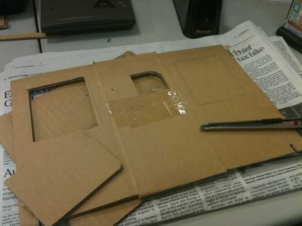 Cuando pones windows en cartón, asegúrese de que usted está lo suficientemente lejos de los pliegues para evitar arruinar su apoyo. Esta es una lección de buena (leer "molesto") aprendí a construir un estudio macro de http://strobist.blogspot.com/2006/07/how-to-diy-10-macro-photo-studio.html