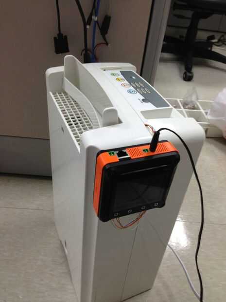 Para el sentido de estado de la máquina usé Tibbit #4-1 (dos entradas optoaisladas). Percibo el estado de un solo LED--"alta velocidad". El lado del LED del opto par interior Tibbit #4-1 está conectado en paralelo a la "alta velocidad" LED en el panel del deshumidificador.