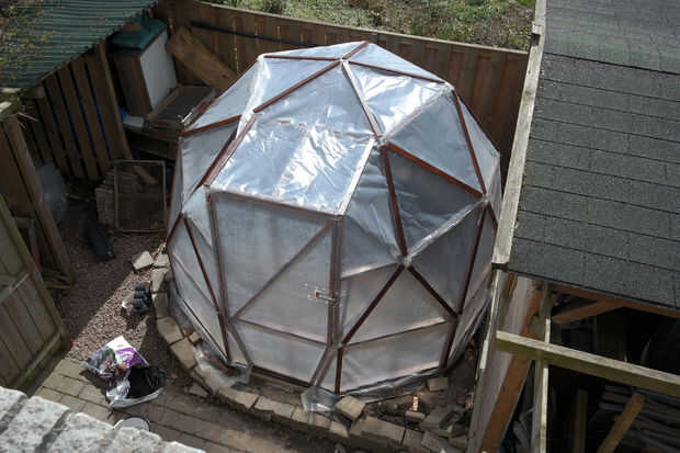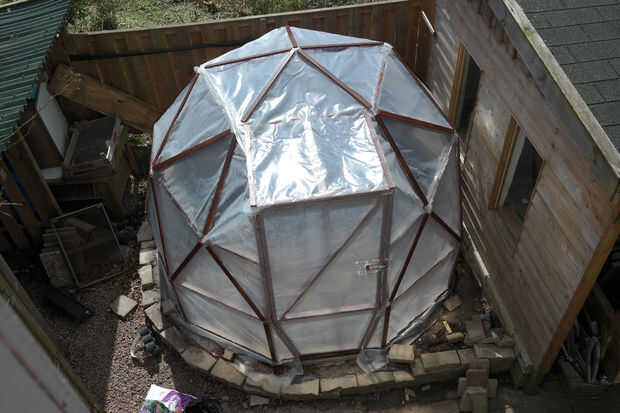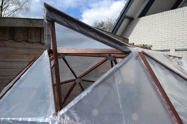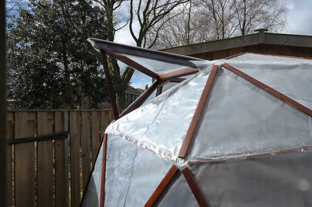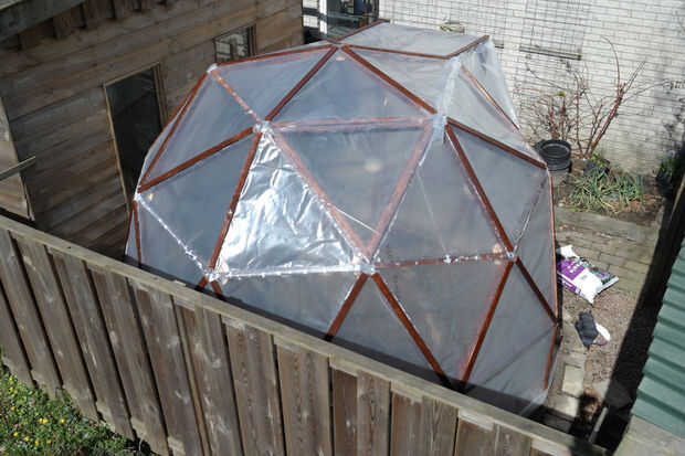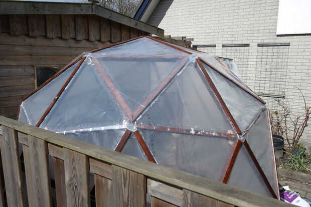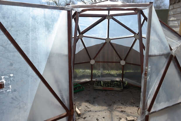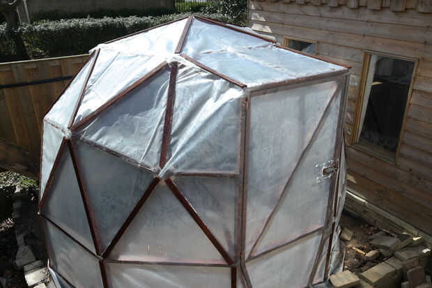 La forma de la tierra dificulta un invernadero normal. También, tengo un amor de domos geodésicos. Puesto que el pedazo de tierra ya es redondeado, tenía sentido hacer un domo geodésico. Me encanta cúpulas porque son ridículamente fuerte y eficiente. Los puntales son sólo cada empujado o halado. Carga flexión siempre no pasa a través de un refuerzo. Además, la estructura de un domo geodésico parece muy complicada, pero es realmente más fácil de construir, ya que es masivo demasiado definido. Basta con cortar los puntales y recuerde el patrón para construirlo completamente. Ninguna cinta métrica siempre es necesario durante la construcción.