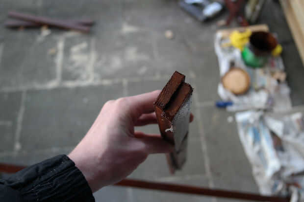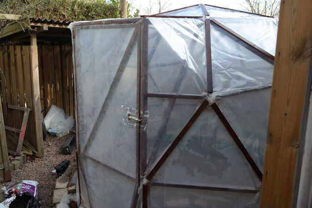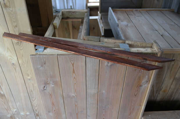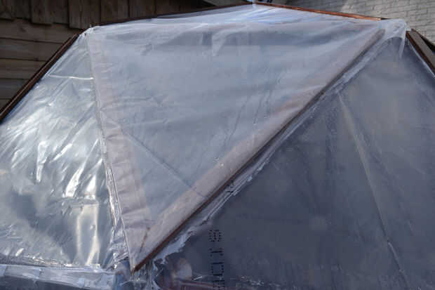 Después de la primera lluvia, rápidamente encontró que el techo sobre la puerta tiene un ángulo muy bajo. Agrupados en la lámina de agua. Para remediar esto, otro puntal fue montado debajo de la media del techo sobre la puerta. Esto evita que la lámina de la comba y deja agua de agrupación hay.