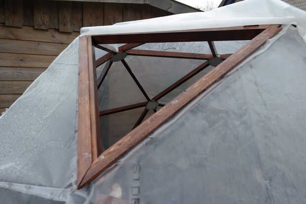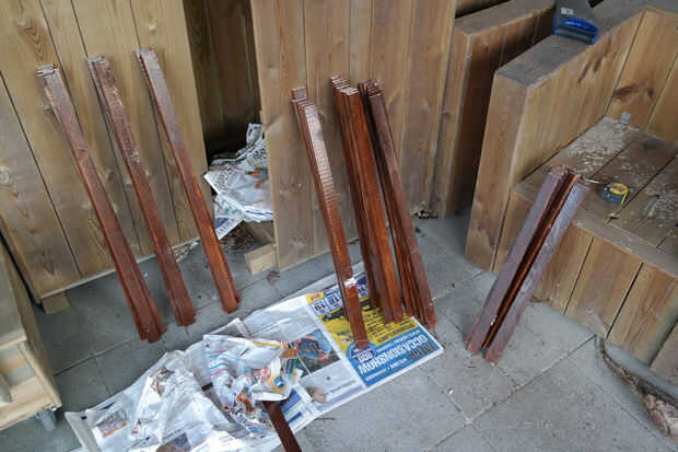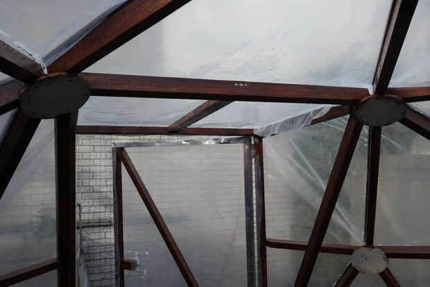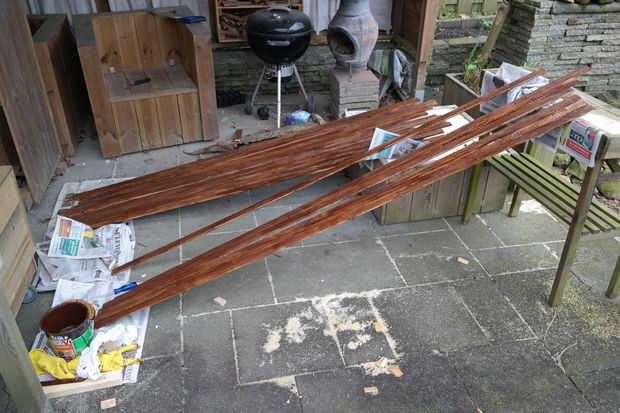 Todos los listones de la necesidad de la misma capa de pintura de la cúpula tenía, tal vez incluso mejor. Los listones será en contacto directo con el tiempo fuera. La pintura sí mismo es bastante sencillo, sólo tener en cuenta que pintura listones de 20 x 2.1 metros llevará horas. Dos capas es suficiente.
