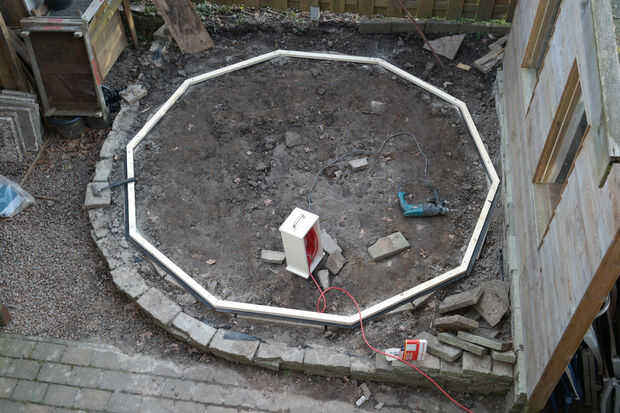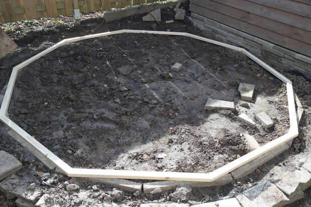 Si hiciste bien, ahora tienes un bonito anillo de madera montado en el anillo de concreto.
