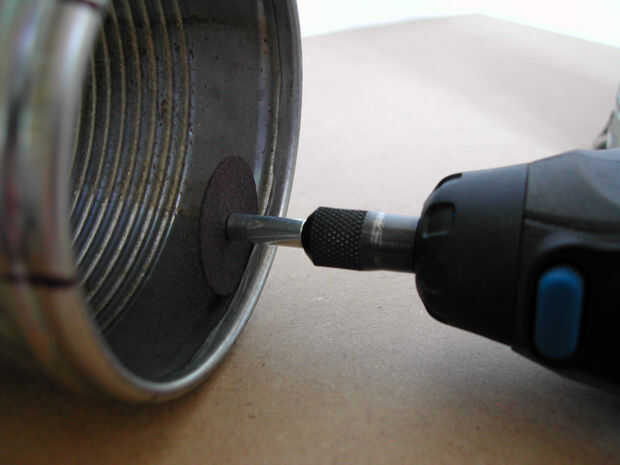 Cortar el anillo de metal duro (lado de la tapa) de la parte superior de la lata de 66mm.