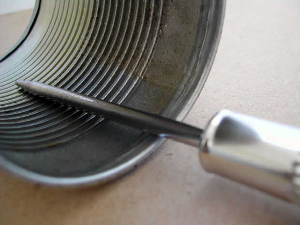 Trabajar un buen destornillador o similar alrededor del agujero para hacer retroceder el borde,