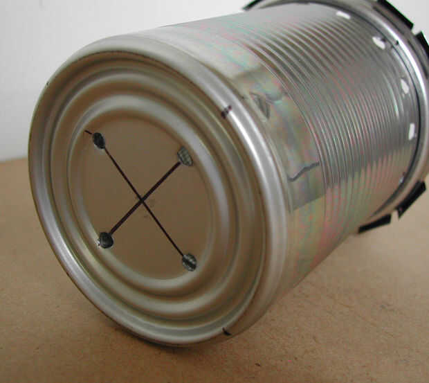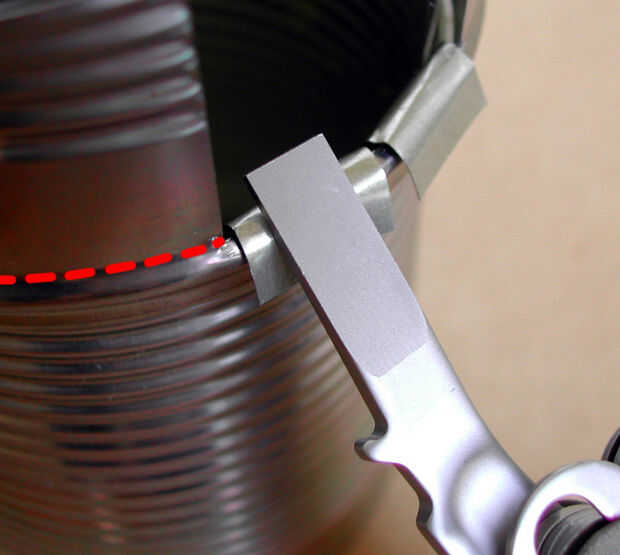 Cortar la base de lo 73,5 mm puede con el cuchillo, después de marcar alrededor de al menos 3 veces.