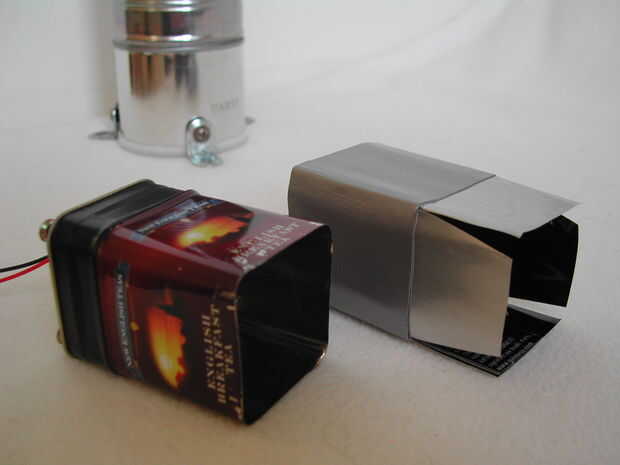 Encontré una lata de té pequeño que mi ventilador, así que hizo una caja fuerte de esta lata y atornillar el ventilador en él. También encontré una tina de comida que es el tamaño perfecto para un caso.