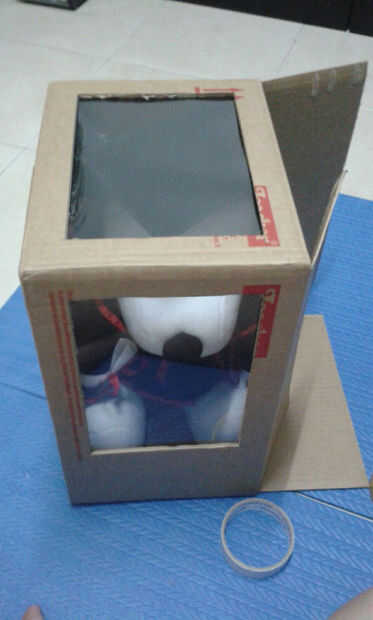 Ponga los juguetes en la caja y sellarla con cinta transparente / loytape.