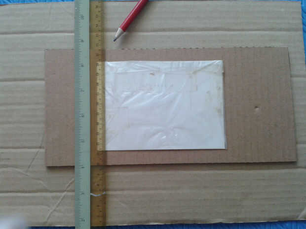 Utilice otra tabla como portada de la imagen. Utilice el lápiz para dibujar la medida que quería cortar.
