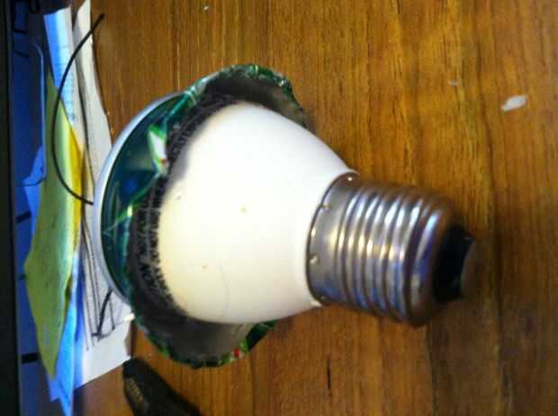 Una bombilla CFL muerta (no romper el vidrio y No apuñalar a sí mismo un flathead destornillador y martillo pequeño me ayudó a abrir minas sin romper el vidrio