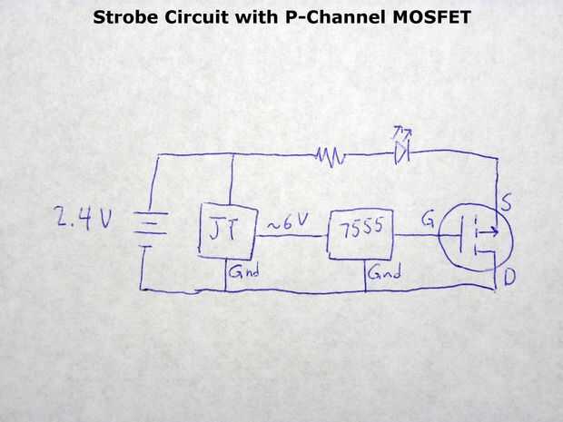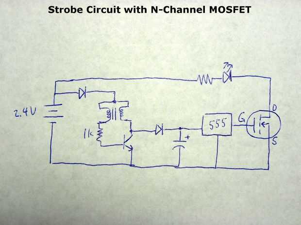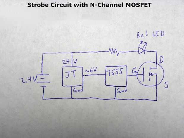Asegúrese de que siempre hay una carga para el Joule Thief. Sin carga, la tensión del condensador puede cargarse demasiado y al girar en el circuito de luz estroboscópica, el temporizador 555 y un MOSFET pueden ser destruido. Si el condensador cobran demasiado, desconecte las baterías y corto el capacitor para descargarlo. Siempre es una buena idea para probar el voltaje con un multímetro.