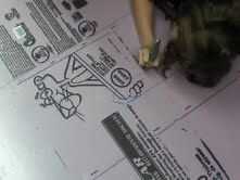 Después de haber dibujado su contorno puede comenzar el prosses de corte de su espada. Sugerimos que el serrucho ya que hace la corte consiguió un poco más rápido pero si no tienes una mano vio que un cuchillo del exacto funcionará igual de bien. Después de cortar su espada, el lado puede ser un poco bruto por lo que si tienes cualquier papel de lija, Lima de uñas o cualquier cosa que podría suavizar los lados poco a poco se hará mucho más fácil a la cinta más adelante.