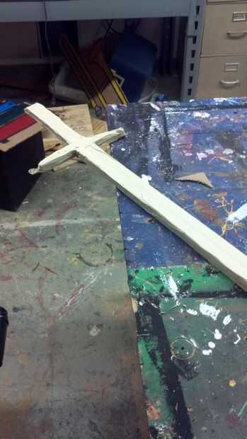 Prop para mi cosplay en progreso, armadura completa de Daédrico. Obviamente se trata de la espada. Está hecho principalmente de madera que forma utilizando un grueso archivo, lijadora de Palma, herramienta rotatoria y acabada con papel de lija. Despu