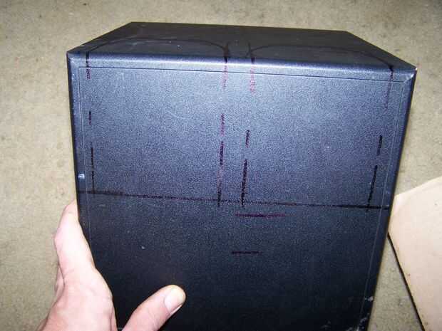 Compruebe la colocación del altavoz frontal de "bass" y placa de circuito. Medir la altura, anchura y profundidad de los altavoces de sonido envolvente. Si parece que se adaptará a pasar a la precisión de medición.