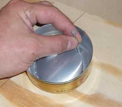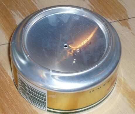 Una vez que ambos pueden sección han sido debidamente estirada, perfore la parte inferior como se muestra. Perfore la parte superior dondequiera que usted tiene gusto, como que desaparecerá más adelante.
