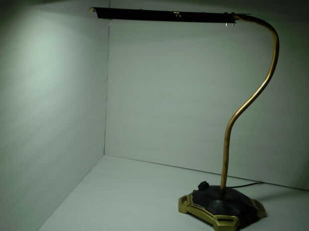 con algunas piezas antiguas, un interruptor más dévil y tubo negro hice esta lámpara. El atenuador ha sido presentada e insertada en la válvula de agua para actuar como un interruptor más dévil. Conexión de la lámpara que pulirse para que quepa dentr
