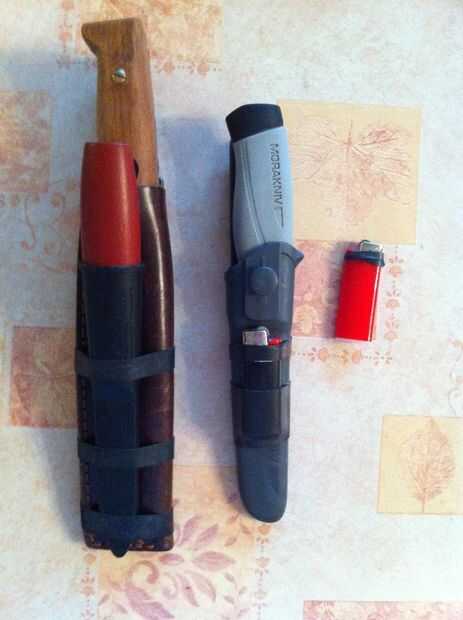 o coloque algo en su vaina de cuchillo (como un pequeño kit de supervivencia, un encendedor, un firesteel o un cuchillo más pequeño).