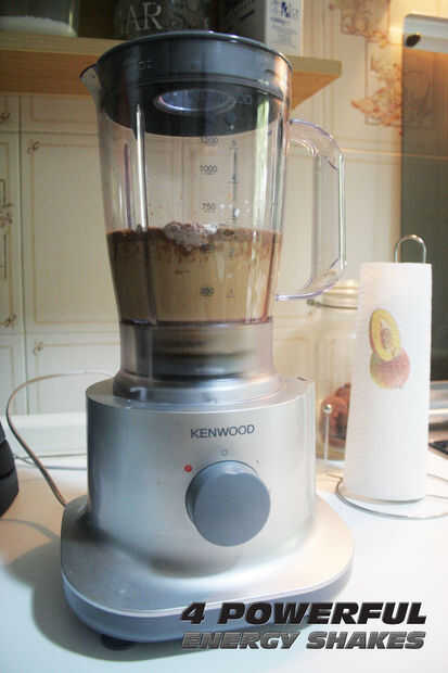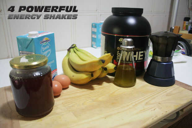 La alta cantidad de hidratos de carbono (procedente principalmente plátano, leche y miel, que son buenas fuentes de calcio, potasio y glúcido), mezclado con la cafeína del café, puede aumentar inmediatamente con relieve muscular y energía (gracias, potasio).