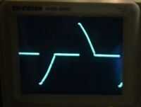 Aquí es la media onda de pecado de 120 VAC como luce en un osciloscopio, arriba.