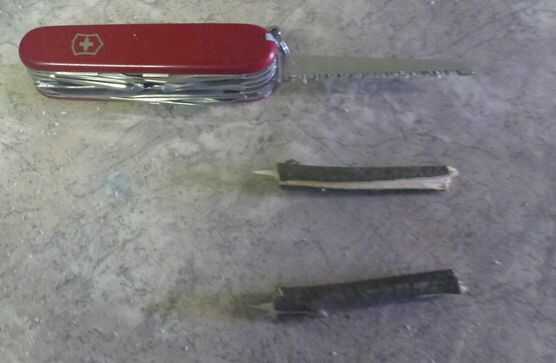 Al encontrar dos pequeños palos que son cerca de 2 1/2 pulgadas de largo y 1/son de pulgada de ancho.
