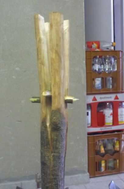 Coloque la navaja cerca de 5 pulgadas hacia abajo de la fractura y luego inserte el palillo abajo el partido por lo que es 5 pulgadas abajo. Lo mismo para el otro palo.