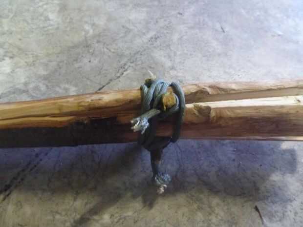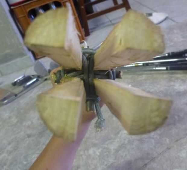 Envolver la cuerda alrededor de los palillos pequeños así que son segura y firmemente. Puede utilizar el encendedor para asegurar los nudos para que no venga y luego cortar los extremos de la cuerda con unas tijeras.