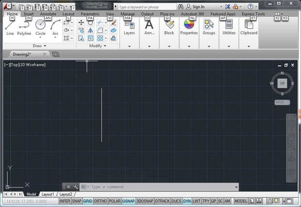Los comandos funcionan mejor cuando usted tiene su encaje ajustado correctamente. Se encuentra en la parte inferior de la pantalla en la barra de estado. Recomiendo conocer esto. Haciendo clic en objeto Snap 'OSNAP' o el ícono OSNAP con la "Cruz" le permite seleccionar objetos con distintas características del objeto: en este ejemplo de hacer una estrella. Para comprobar y cambiar, haga clic derecho sobre el icono de "OSNAP" (o "OSNAP") y seleccione "Objeto Snap": "punto final", "centro" y "intersección", deben ser seleccionados. El primer paso es crear una línea vertical. No importa dónde está, o cuánto es; sólo una línea vertical de la línea. Podemos extender o recortar más tarde. Mantener presionada la tecla shift al dibujar la línea asegurará que la línea es vertical.
