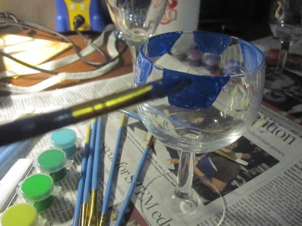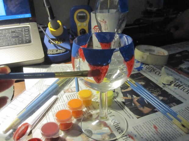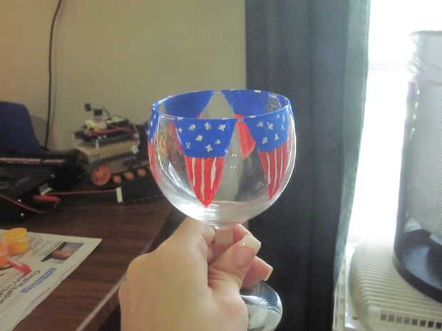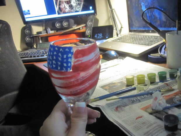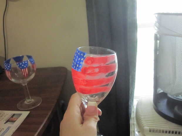Había vestido un diseño de bandera alrededor del borde de un vaso y pintó una bandera en otro vaso de una manera nueva.