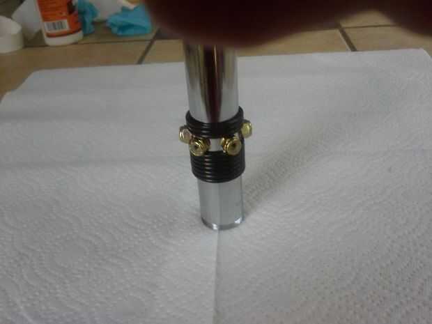 Tome sus 6 tuercas de seguridad y espacio uniformemente aparte dentro de la distancia entre los anillos. Empuje hacia adentro o afuera los O-Rings hasta que todas las tuercas están tocando los anillos. Luego, utilizando el pegamento, pegamento abajo todas las tuercas en su lugar. Limpie lejos el exceso de pegamento donde sea necesario.