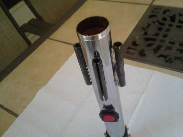 Espacio uniformemente los pernos de tensión 4 aparte en la pipa de aluminio. Posición para que cada uno de los pernos de tensión tenía el boquete que se pega hacia fuera. Ahora pega abajo de los pernos de tensión en esta posición y limpie todo exceso de pegamento.