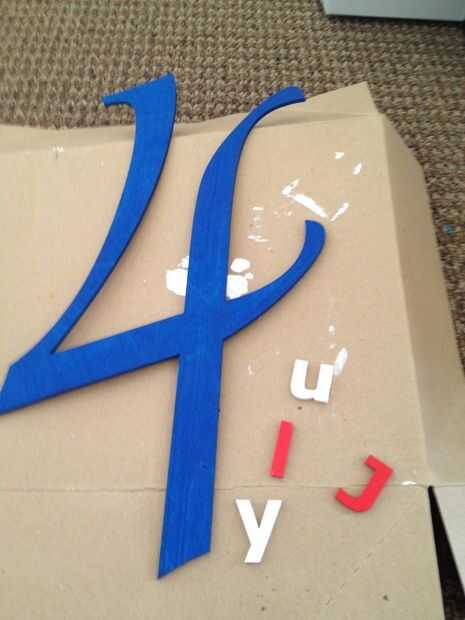 Pintar sus cartas "Julio" y el "4" con el rojo, blanco y azul arte pintura.