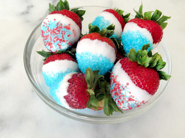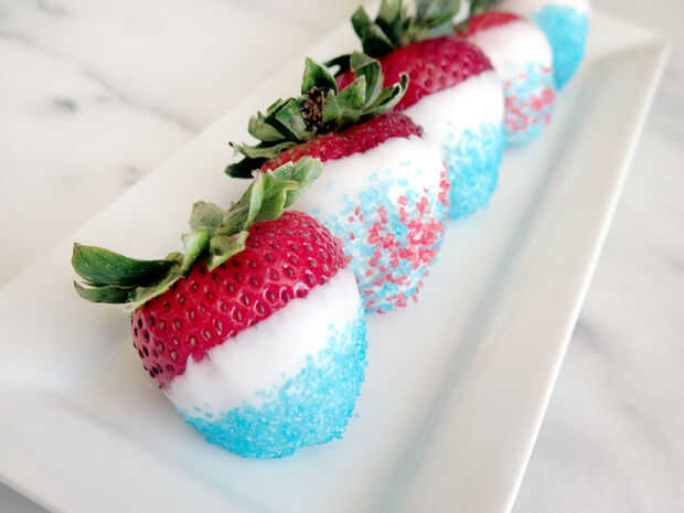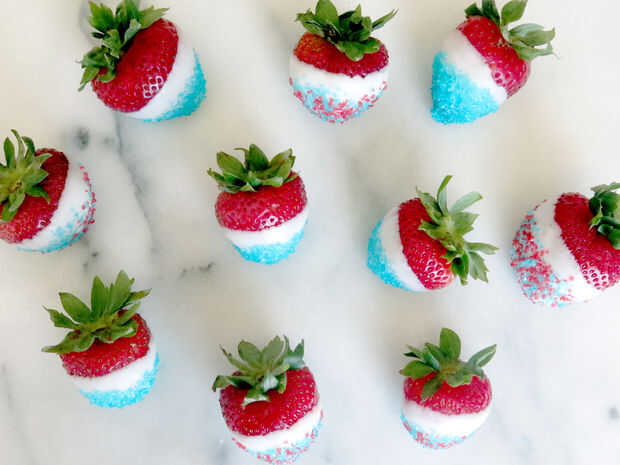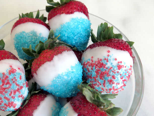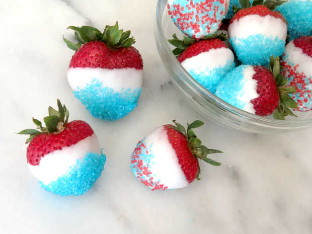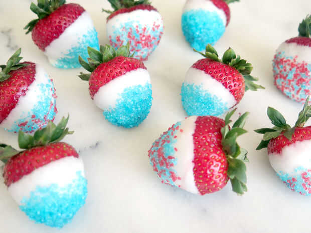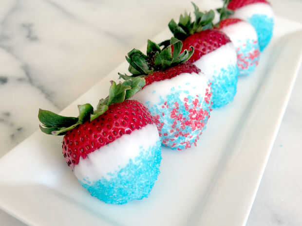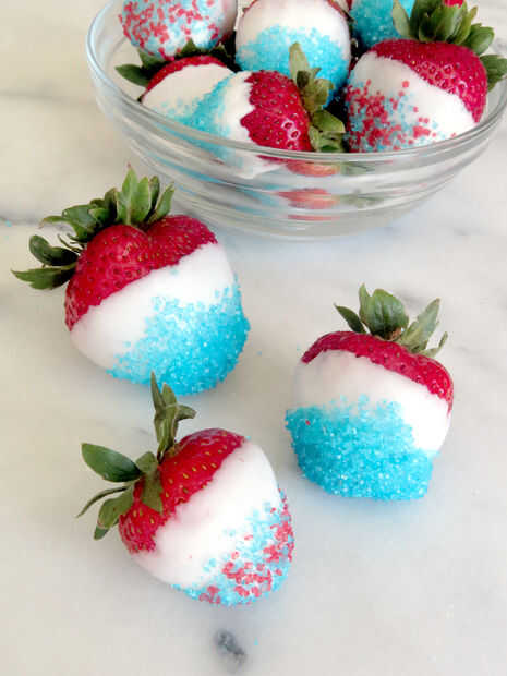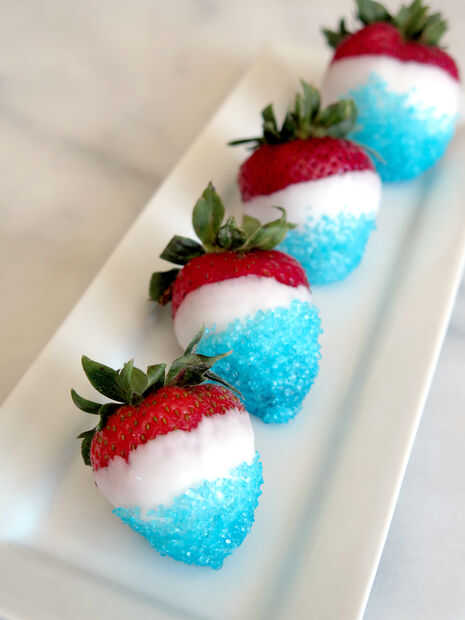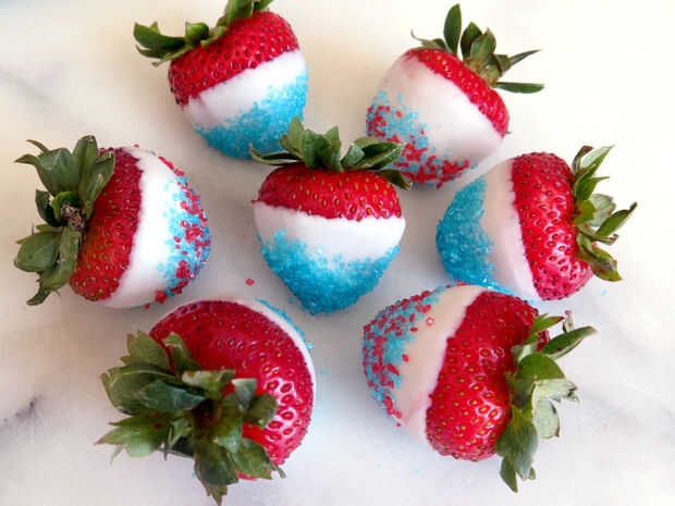 Rojo, blanco y azul fresas con caramelo azul