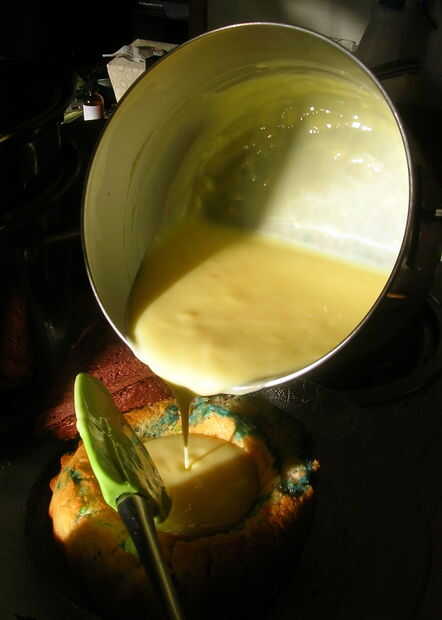 Dejarlo enfriar un rato. No lo ponga en su pastel mientras que todavía es muy caliente, o hará un lío (confía en mí, lo probé).