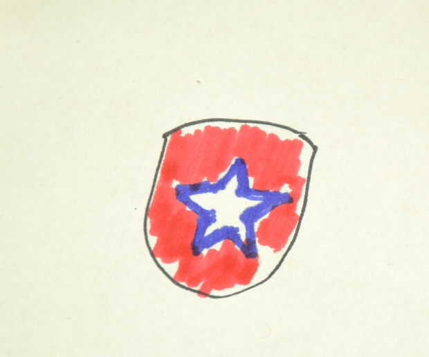 Quería mostrar lo que estoy tratando de lograr aquí. Quería hacer algo como bandera, pero no con tanto detalle. Así que decidí hacer una base de rojo, con una estrella blanca delineada azul. Pensé que era algo así como un escudo. Como el Capitán América!